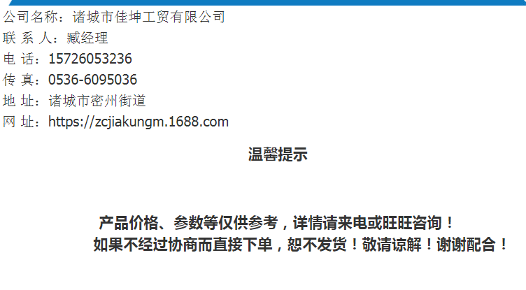 歡迎光臨諸城市佳坤工貿(mào)有限公司!